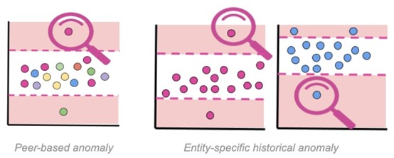 而「行為異常」則是與預期行為有偏差者;可以是實體與其同儕之間的差異、實體與其歷史行為之間的差異,或兩者的某種結合。