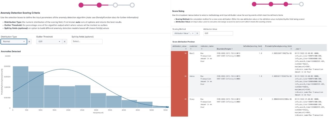 Splunk App for Behavioral Profiling 應用套件解決了這個問題,可透過簡單的點擊操作協調上述所有步驟。有了它,您能夠使用一行 SPL 部署行為式指標搜尋,並導入簡單的評分機制,以便將注意力從誤報轉移到真正重要的實體上。