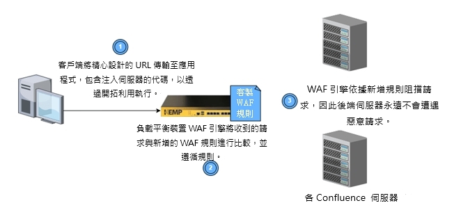 正在執行WAF的LoadMaster客戶還有另一個選項。我們屢屢獲獎的支援團隊設計出兩套WAF規則,可以加入成為LoadMaster的客製化規則,立即防護Confluence部署,使其在系統修補完成之前不會遭到開拓利用。將能降低LoadMaster客戶的停機時間(以及減少焦慮不安)。