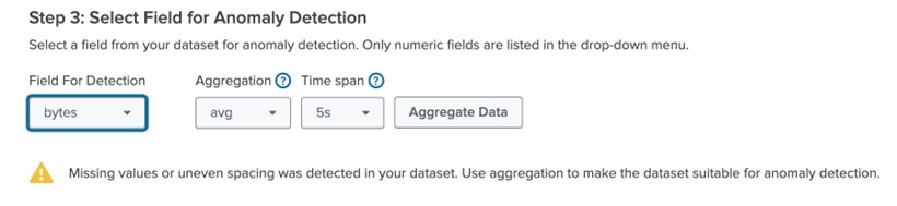 Splunk App for Anomaly Detection 有一個很棒的功能,就是會在您選擇進行異常偵測的欄位時進行資料健康診斷。這個應用套件會進行檢查,確保資料適合使用該應用套件的演算法進行異常偵測。如果健康檢查顯示資料已準備好,您就可以開始進行。但若健康檢查顯示有問題出現,該應用套件能讓您輕鬆修改資料以進行異常偵測。