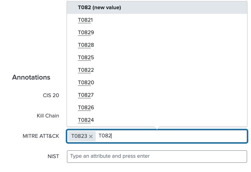 在早期,我們希望確保客戶能夠利用適用於 ICS 的 MITRE ATT&CK 框架。在先前的版本中,我們優先處理了對偵測結果進行對應的能力。在最新版本中,您可以輕鬆地將 MITRE ICS 偵測新增到關聯規則中,並利用 Enterprise Security (ES) 現有的內建框架對應機制,以確保我們的客戶能夠利用所有安全框架。我們同樣兼顧了包含 MITRE ATT&CK、CIS 20、NIST或 Kill Chain。此附加元件提供的每個關聯規則都已經預先對應好了,提供任何想使用其他安全框架的人使用。