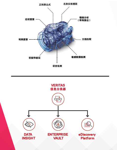 • Enterprise Vault 和 Enterprise Vault.cloud:索引和分類存檔資料,簡化資訊搜索、檢索和處置。