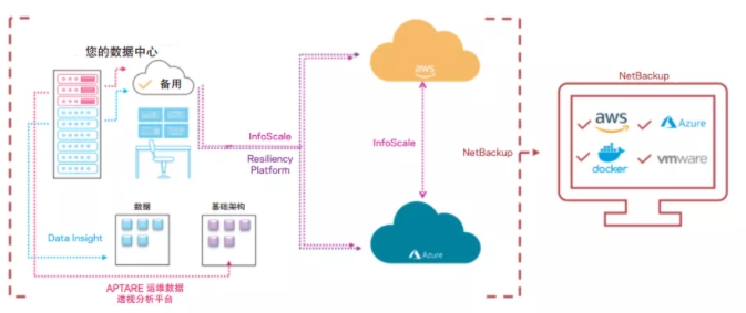 遷移:遷移過程要實現靈活性,不影響正常業務操作。NetBackup Resiliency Platform ,構建並部署全面的、完全自動化的端到端資料中心災難恢復和遷移計畫。InfoScale ,確保物理環境、雲及其中的一切正常運行,且保證資源配置大小都恰當,從而保證混合多雲之間的無縫移動。