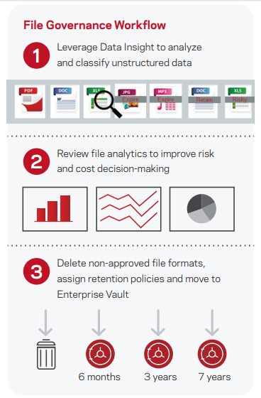 某地區知名能源公司使用 Data Insight 精准發現50萬過期、重複的 PST 檔,通過 Enterprise Vault 將其標記為“過期使用”,成功回收共計10%的 NAS 空間。