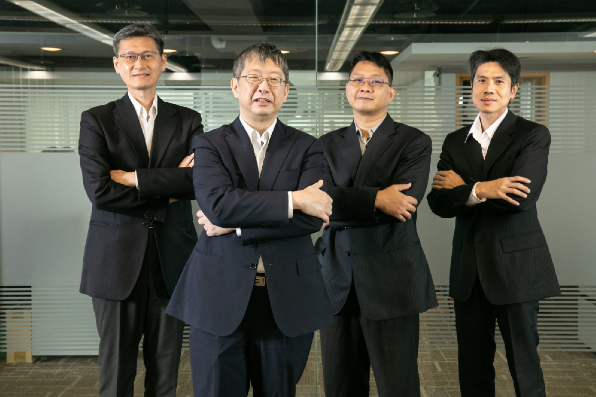 ??永豐銀行率先成為國內首家導入微軟Windows 虛擬桌面的金融業者,永豐銀行系統營管部資深經理林子惠(左起)、永豐銀行資深副總經理蔡瑞庭、永豐銀行系統營管部資深經理張仲堯科長、永豐銀行系統營管部副理李政德盼可在此重要時刻,持續守護台灣金融營運,客戶服務不中斷