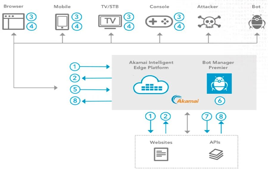針對支援流覽器模式或基於 iOS 或安卓內核流覽器 Webview 訪問請求,Akamai WAP & BMP 解決方案可進行有效防護。鑒於 Bot 攻擊體量小,API 請求類型合法化,普通 WAF 模式難於防護,用 BMP 爬蟲行為檢測功能可以輕鬆識別。