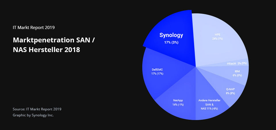 台灣台北─2019 年 6 月 21 日─群暉科技 Synology® 在瑞士最大專業 IT 通路媒體 IT-Markt 進行的 IT-Markt-Report 2019 調查中,在資料儲存市場佔有率為瑞士第二,勝過 IBM、NetApp 等廠商。