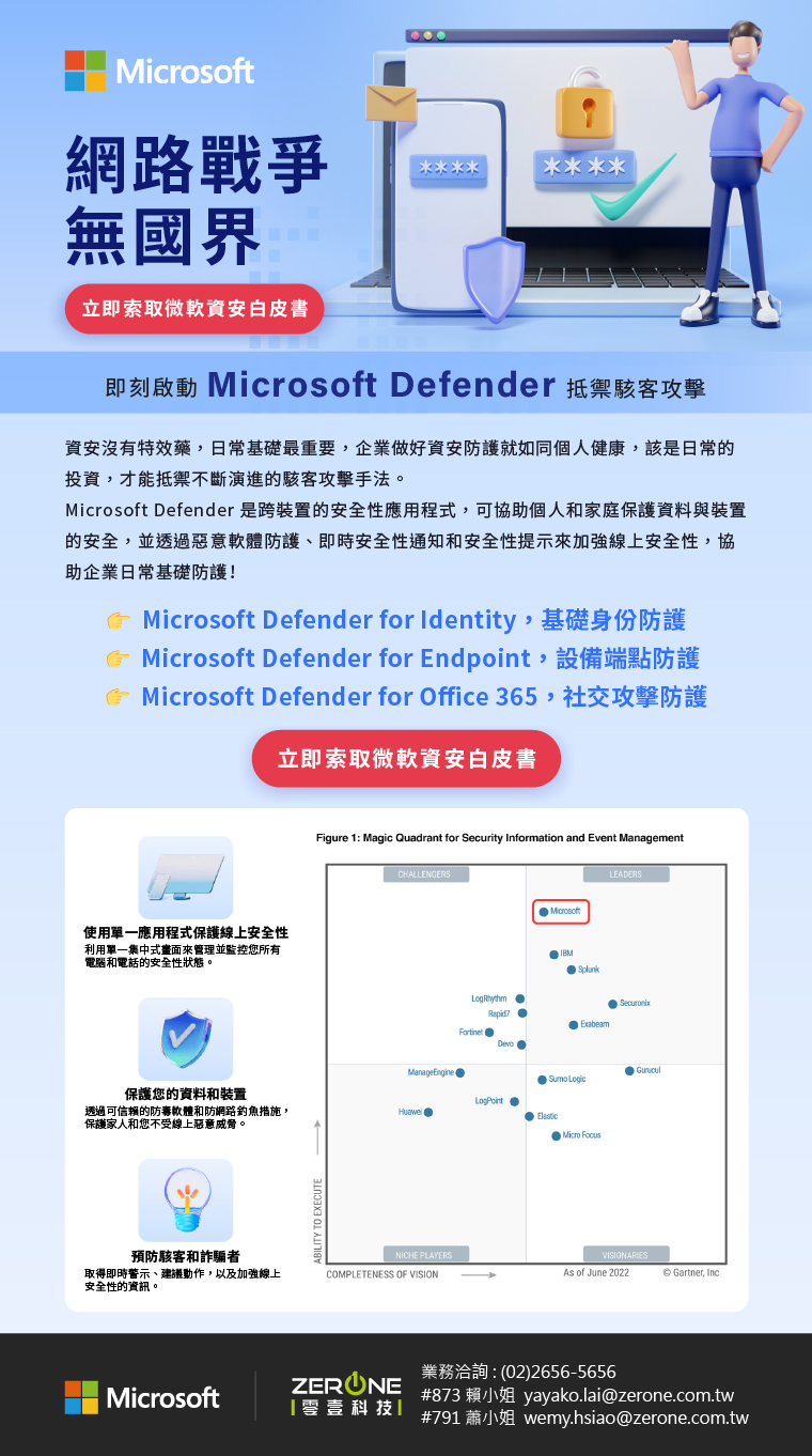 立即索取白皮書|即刻啟動 Microsoft Defender 抵禦駭客攻擊