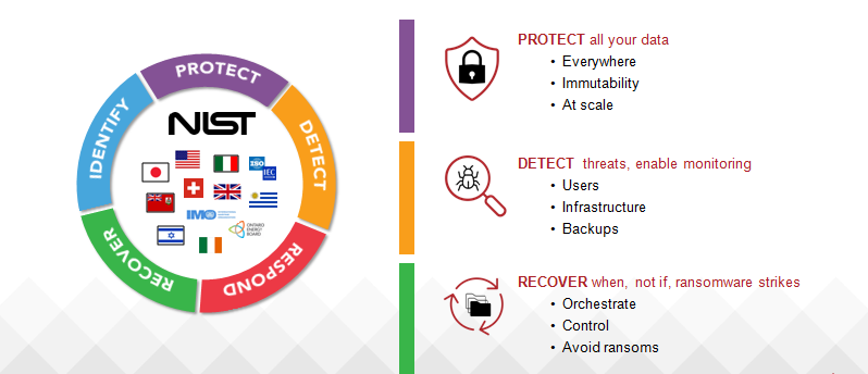 遵循國際通行的勒索軟體防護最佳實踐模型,從保護、檢測到恢復,Veritas 為市場提供了廣泛的產品特性和功能。同時支援客戶自訂,以滿足獨特需求。