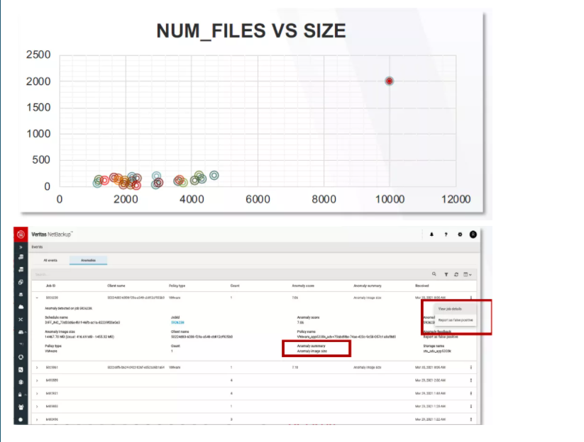 NetBackup 9.1異常檢測引擎與NetBackup主服務器無縫集成,包含在NetBackup主服務器中,配置簡單。備份架構師或安全管理員可以查看異常並深入分析,以確定影響企業的根源所在。