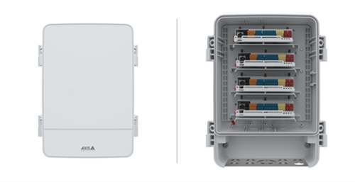 它包括四個 AXIS A1210-B 裝置,封裝在AXIS TQ1808-VE Surveillance Cabinet (堅固、防破壞的 IK10、IP66 和 NEMA 4x 等級機櫃) 中。內建邊緣端智慧功能,在內部處理所有與門禁相關的工作,即使網路中斷也能處理,此外,還能透過內建網路安全功能,防止未經授權的存取,並確保系統的安全。