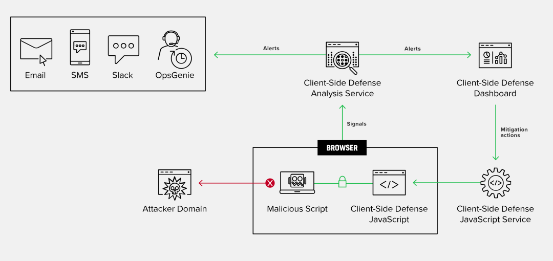 當今企業大多都專注於伺服器端防禦,雖然現有的安全控制(例如防火牆、WAF 和入侵檢測)有助於保護伺服器端數據,但依舊有大部分犯罪活動發生在瀏覽器中。 用戶端攻擊(例如 Magecart)從用戶端瀏覽器中獲取表單數據並將其直接發送到攻擊者域,從而繞過伺服器端的防禦。 如果沒有在瀏覽器中提供安全有效的用戶端防禦,公司很容易受到攻擊。
