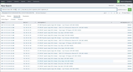 index=suricata ("2021-44228" OR "Log4j" OR "Log4Shell")