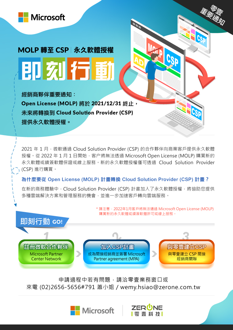 Microsoft 經銷夥伴重要通知|MOLP轉至CSP 提供永久軟體授權