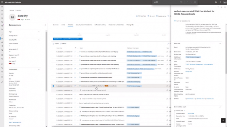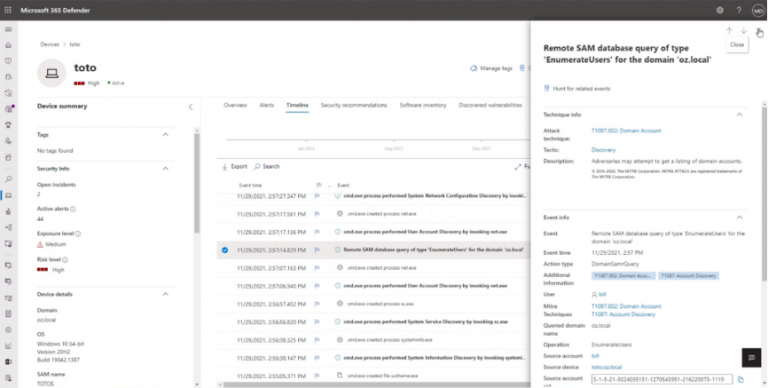 不同於其他眾多廠商 (採取產生多個警示和多個事件的做法),Microsoft 365 Defender 會針對每個攻擊產生單一事件,將跨越不同裝置和身分識別的所有事件整合為每個攻擊的全方位檢視。