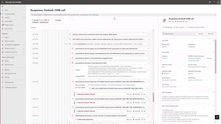 Microsoft 365 Defender 採用獨特的事件關聯性技術,能做為 SOC 分析師的寶貴利器,協助減輕警示疲勞。它可節省他們手動建立關聯性或處理個別警示的所需時間,繼而大幅提升威脅的回應效率。此外,Microsoft 365 Defender 也能透過完整的攻擊圖表檢視,更輕鬆快速地進行分類和調查。