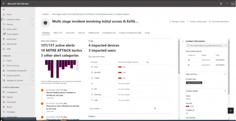 本次為 Microsoft 365 Defender 第三度展現整合式 XDR 套件的強大威力,並展示跨越裝置、身分識別和雲端應用程式的涵蓋範圍。
