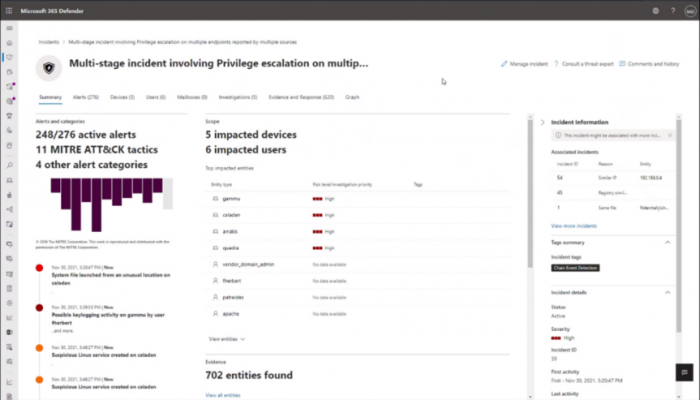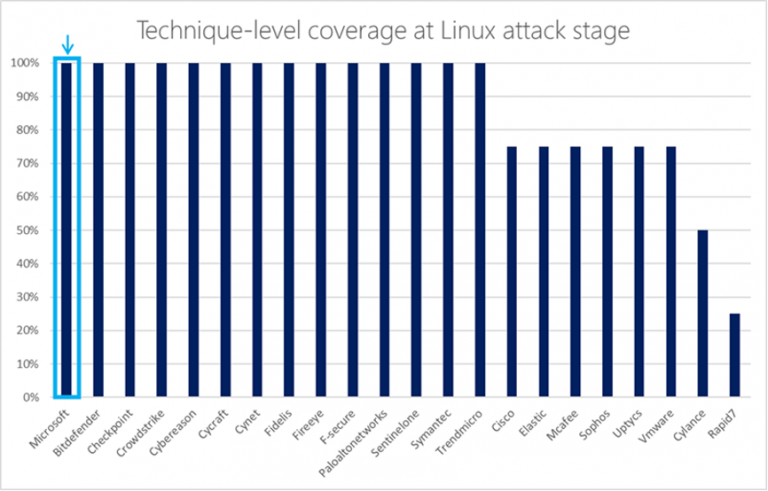 Microsoft 365 Defender 持續展現了在所有平台上出色的保護涵蓋範圍,並於 Windows 和 Linux 上提供優異的保障。它能透過技術層級的分析、內容豐富的警示和深入的調查訊號,將所有 Linux 相關階段納入保護範圍中。