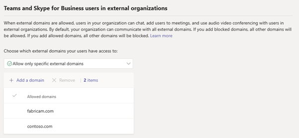 我們已根據客戶意見反應,將 Teams 系統管理中心內 [外部存取] 頁面上的使用者介面加以簡化。現在,Teams 管理員可輕鬆根據組織需求,在四個外部存取設定中擇一選用。請注意,此舉的用意在於改善可用性,且不會對貴組織的現有外部存取設定造成任何影響。