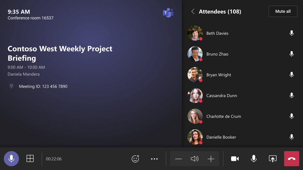 新一代的 Surface Hub 版 Teams 歷經重新設計,可將您最喜愛的傳統型應用程式功能導入會議空間中。Surface Hub 版 Teams 備有新的會議展示區域、一組健全的會議控制項,以及多項熱門功能,例如共聚模式場景、背景雜訊抑制、聊天泡泡和即時表情符號,能為混合式職場提供更豐富的協同合作體驗。