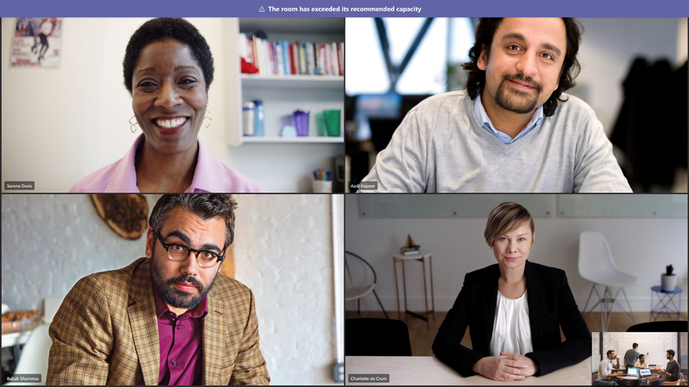 已在團隊房間中為 GCC-H 植入了大畫廊和一起模式視圖。它允許 Teams Rooms 支持不同的視頻庫佈局,包括在 GCC 高雲中的大型畫廊和一起模式。