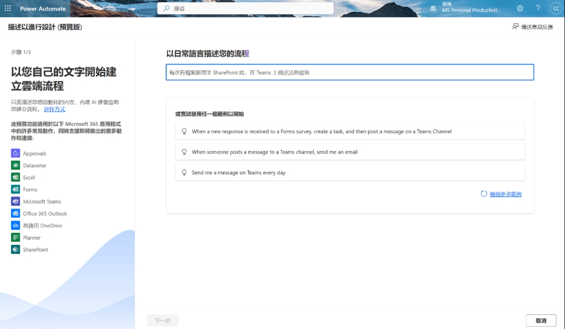 這讓我們不需要任何 Power Automate 專業知識,只需要用自然語言就可以構建任何想要的流程。