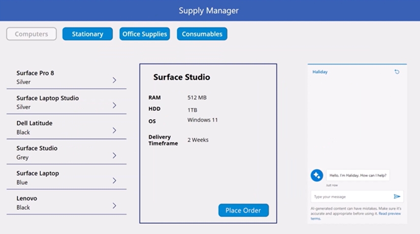 例如:我們告訴 Power Apps 「生成一個員工入職 App,獲取新員工資訊,並分享員工訓練內容和學習路程模組」 , Copilot 就可以自動生成應用。