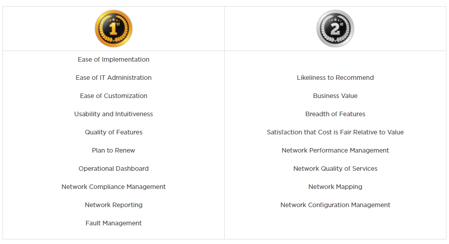 Info-Tech Research Group 是 Software Reviews 家族的一分子,Software Reviews 向真實客戶收集最詳盡的企業軟體評論並進行分析,以便使用者在購買前針對產品及廠商獲得前所未有的見解。根據針對16家廠商、共837筆的評論,WhatsUp Gold 排名第二,且在以下類別中排名第一或第二: