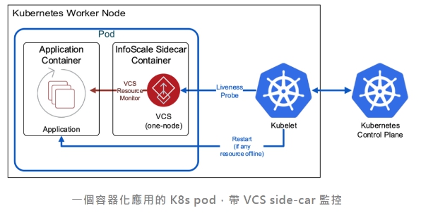 雖然Kubernetes為集群容器環境提供了出色的配置管理和編排功能,但它對在其管理的容器中運行的應用程序並沒有可見性。用戶的容器化應用仍然會暴露於潛在的停機風險之中,比如掛起的進程和無法訪問的存儲,這些情況可能無法被監測到。InfoScale可以確保第一時間將影響應用程序可用性的問題傳達給Kubernetes,以便採取必要行動,保持應用程序時刻在線。