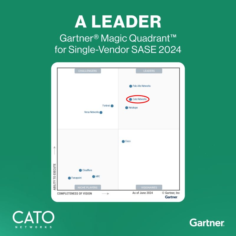 我們很榮幸地宣布,Cato Networks 在 Gartner 2024 年單一供應商 SASE 魔力象限中獲評為領導者地位,這一榮譽是對我們在推動網路安全和創新方面不懈努力的高度肯定。