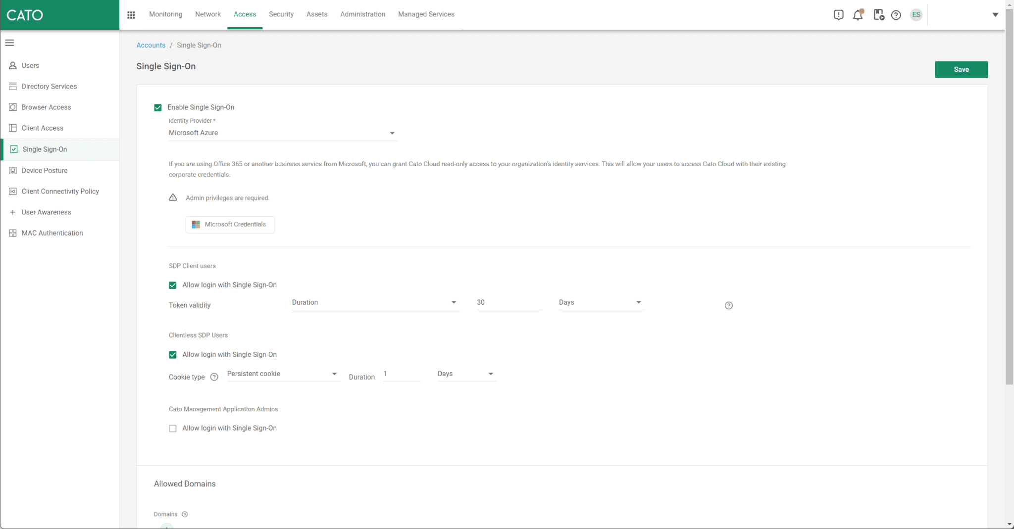 Cato 與身分提供者整合,提供強大的身份驗證和單一登入 (SSO) 體驗。設定現有的身份驗證服務(例如 Office365 或 AzureAD)以遠端存取 SSO 讓使用者透過他們已經熟悉的介面更加安全地進行身份驗證。在您的身分提供者啟用多重身分驗證將自動強制執行到遠端存取使用者的身份驗證中,進一步強化遠端存取安全性。