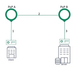 下圖顯示了從客戶端到伺服器的連線,其中 PoP A 和 PoP B 充當代理伺服器: