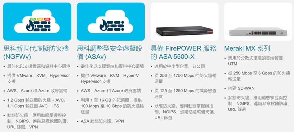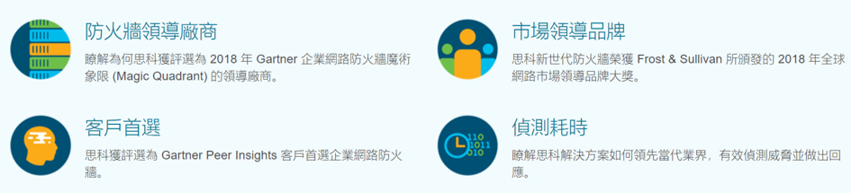 因應威脅不再頭痛醫頭、腳痛醫腳。讓思科新世代防火牆為您捍衛資安。自動化的原則套用和強制執行可釋出時間,讓您能專心處理高優先順序的工作。思科防火牆與思科其他整合式安全工具 搭配使用,能迅速找出威脅並加以遏止。