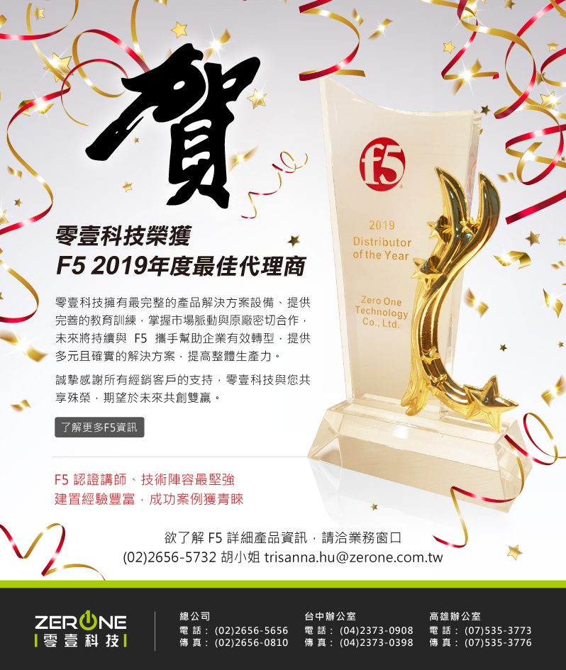 賀! 零壹科技榮獲F5 2019最佳代理商