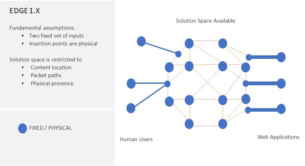 此外,原始 CDN 架構典範的基本設計原則(目的在於解決 Tim Berners-Lee 提出的網際網路「World Wide Wait」難題),是假設兩個端點集合(使用者及其存取的內容)為相對被動的實體,且主要是將問題的解決方案移交至某些中介層:於此案例中為 CDN。網際網路生態系統的演變(尤其是向以容器為基礎的微服務應用程式和智慧型終端使用者運算的轉移)卻完全破除了該假設。