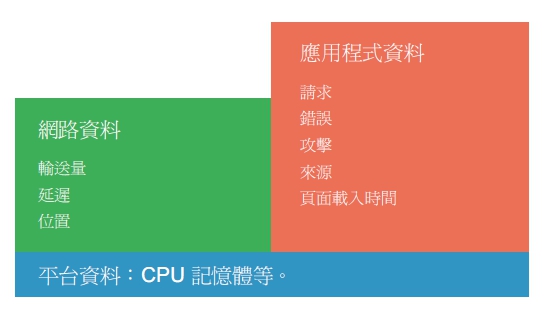 每個人需要的資料不盡相同,應用團隊更關心的是應用程式的統計資料,例如延遲率、頁面載入時間或錯誤代碼。基礎架構團隊需要監控平台效能和系統警示資訊。安全團隊則會尋找異常情況和偵測攻擊率。
