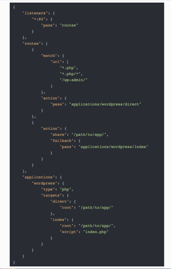 以wordpress為例,只需一個Unit軟體就行。 以下是它的配置。