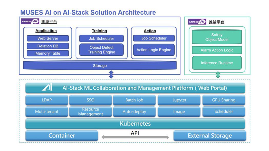 科智企業的智慧工廠方案結合數位無限AI計算管理平台,整合出MUSES AI on AI-Stack智慧製造解決方案,讓客戶都可安全導入AI到內部,並快速部署AI模型到邊緣端,可視需求結合混合雲管理模式
