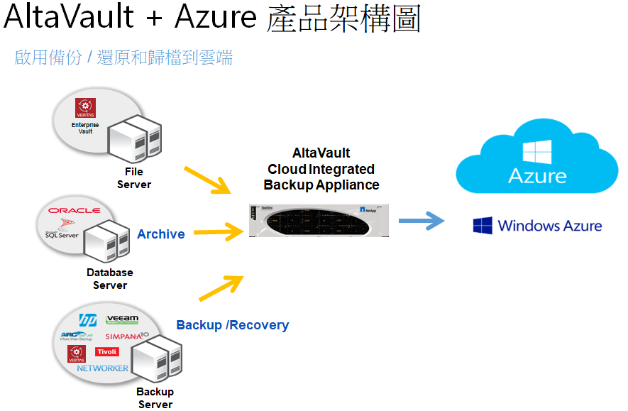 主力產品: NetApp AltaVault系列 + Microsoft Azure