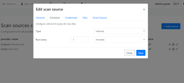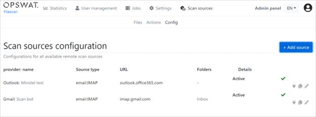 另一個新的網絡服務功能是可從頂部菜單訪問的掃描源功能。它允許配置 web 服務以從各種來源提取文件/URL。