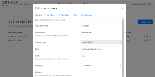 要設置電子郵件掃描源,請導航至「掃描來源」、「配置」、「添加來源」。
