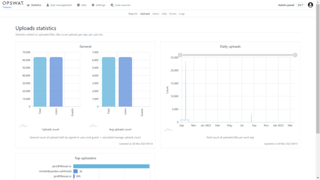 統計頁面提供了各種數據分析,包括文件類型的數據、活躍用戶總數、最多上傳者、上傳者數量等等。
