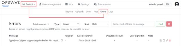 擁有管理員權限的用戶在登入OPSWAT Filescan網路服務後可以找到管理員介面。您可以通過在螢幕右上角的用戶個人資料選項中尋找"管理員介面"按鈕來找到它。