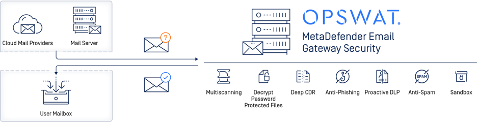 OPSWAT的MetaDefender Email Security解決方案將使您的電子郵件安全達到最高水準,防止Domino等先進惡意軟體的威脅。其多重掃描和深度CDR技術,加上先進的反釣魚功能,使其成為保護組織電子郵件通訊免受先進網路威脅的強大解決方案。