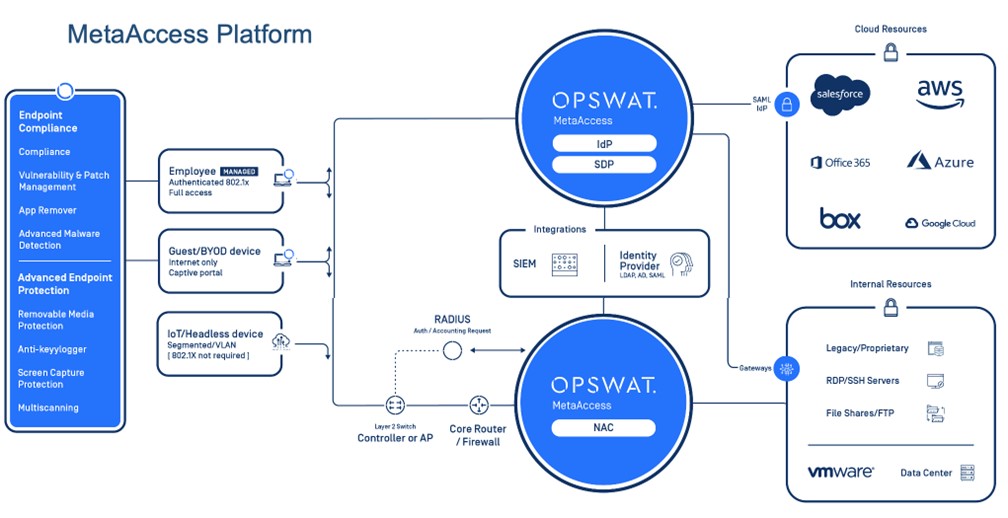 SASE ( Secure Access Service Edge) 的話題,在這些年不斷地被討論著,這樣的網路架構在於網路邊界的定義,例如網路安全閘道、雲端存取、防火牆及零信任網路等方式,其主軸在於為企業實現安全網路模式的願景;Garner在2022年初提出 Secure Service Edge. , SSE (安全服務邊界)的概念,其出現取代了原先的 Cloud Access Security Broker. ,CASB (雲端存取安全閘道)的概念,主要原因在這些年疫情爆發後,改變了許多企業辦公的型態,以往的辦公環境轉變成混合辦公或是完全遠距辦公的環境,於此之時企業安全面臨到重大的挑戰,OPSWAT也看到了這樣的需求及改變,MetaAccess就是這樣的一個解決方案,為提供安全的網絡訪問和深度的端點合規性,當用戶連接到相關資源前,檢查端點上相關的合規性,確保用戶連線的環境如:防毒軟體以及重要的系統是否安裝、更新,端點中是否存在安全疑慮等問題,避免因為混合辦公環境為企業帶來的風險;同時也可整合MetaDefender Core為企業提供更高的安全性。