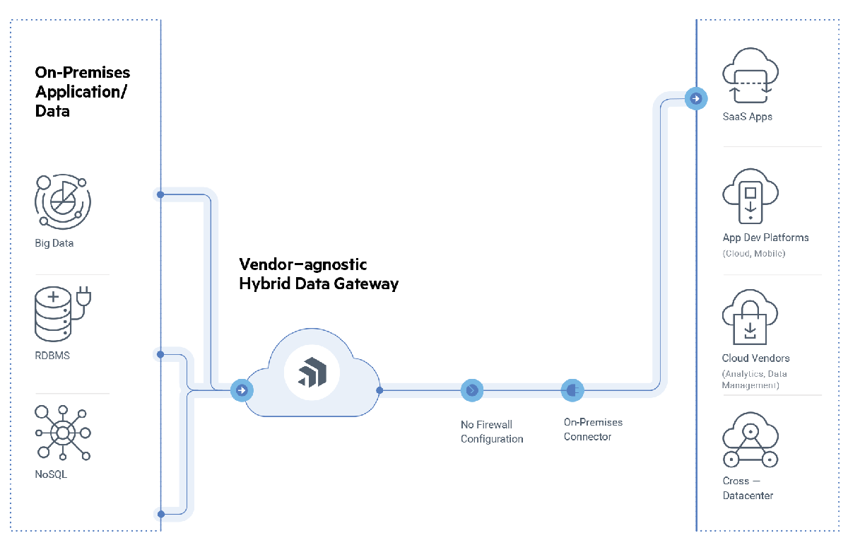 • Secure Hybrid Data Gateway使您無需複雜的網路配置(例如SSH隧道,反向代理或VPN)即可存取任何防火牆後的資料數據