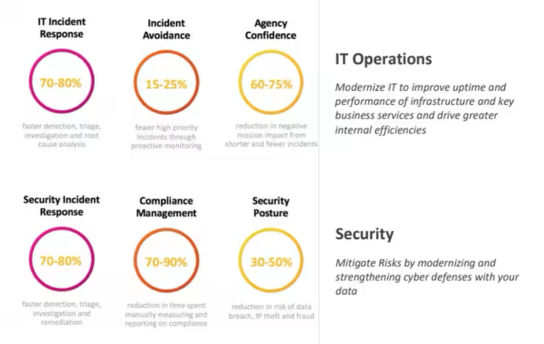 Splunk 的即時儀錶板為組織提供了對其所有系統的全面可見性,使他們能夠在關鍵風險和問題成為重大事件之前識別和解決它們。 通過執行儀錶板,整個組織的團隊可以全面瞭解任何問題或事件,從而提高整體彈性。 公共部門組織可以改進其 MTTD 和 MTTR,更快地恢復和運行。 此外,Splunk 對未充分利用數據的全面瞭解可以加速數字化轉型,並使他們能夠更自信地為選民服務。