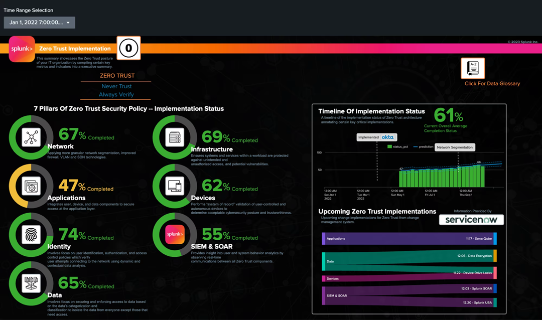 根據Meritalk和Splunk最近的一項調查,91%的政府網路安全專業人員表示,他們的組織需要一個成熟的、總體的彈性戰略 。 但同一組報告稱,公共部門領導層仍然從簡單的合規和風險管理的角度考慮彈性。 Splunk並不是第一個作為可視化工具想到的產品。 但是,當涉及到組織狀況的即時可視化時,Splunk 能夠將來自設備、應用程式、本地和雲服務的數位數據流攝取和分析到整合視圖中,從而提供其他運營報告或數據倉庫可視化工具無法提供的執行見解。